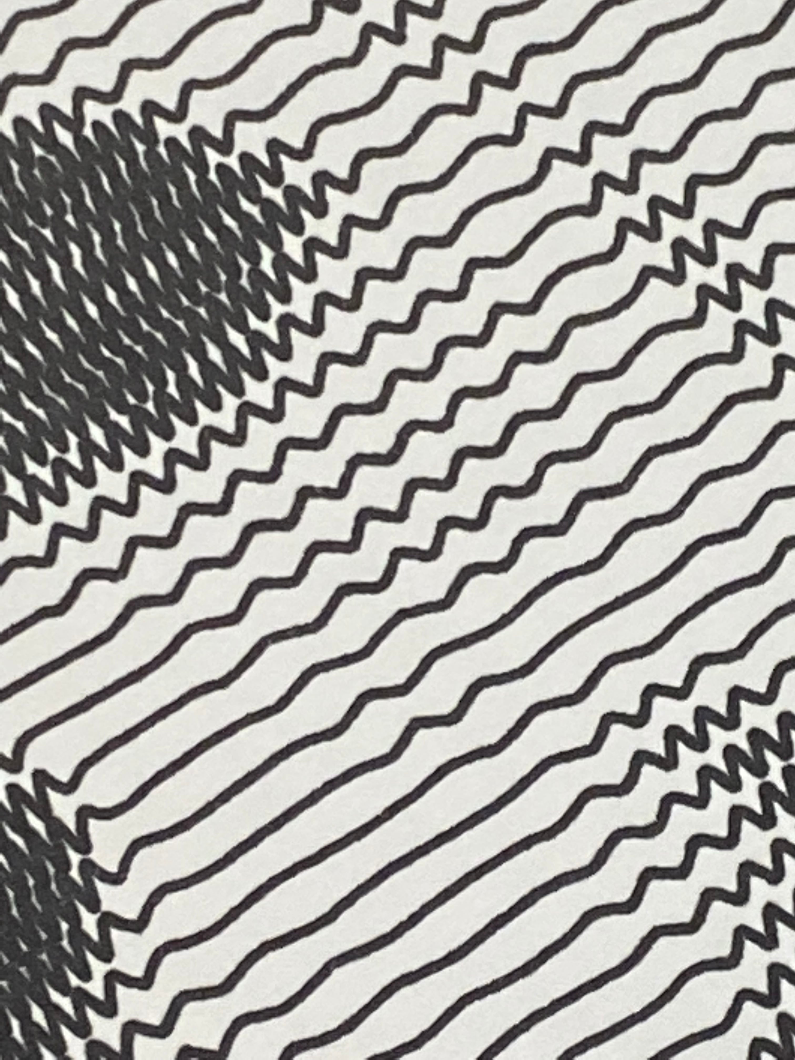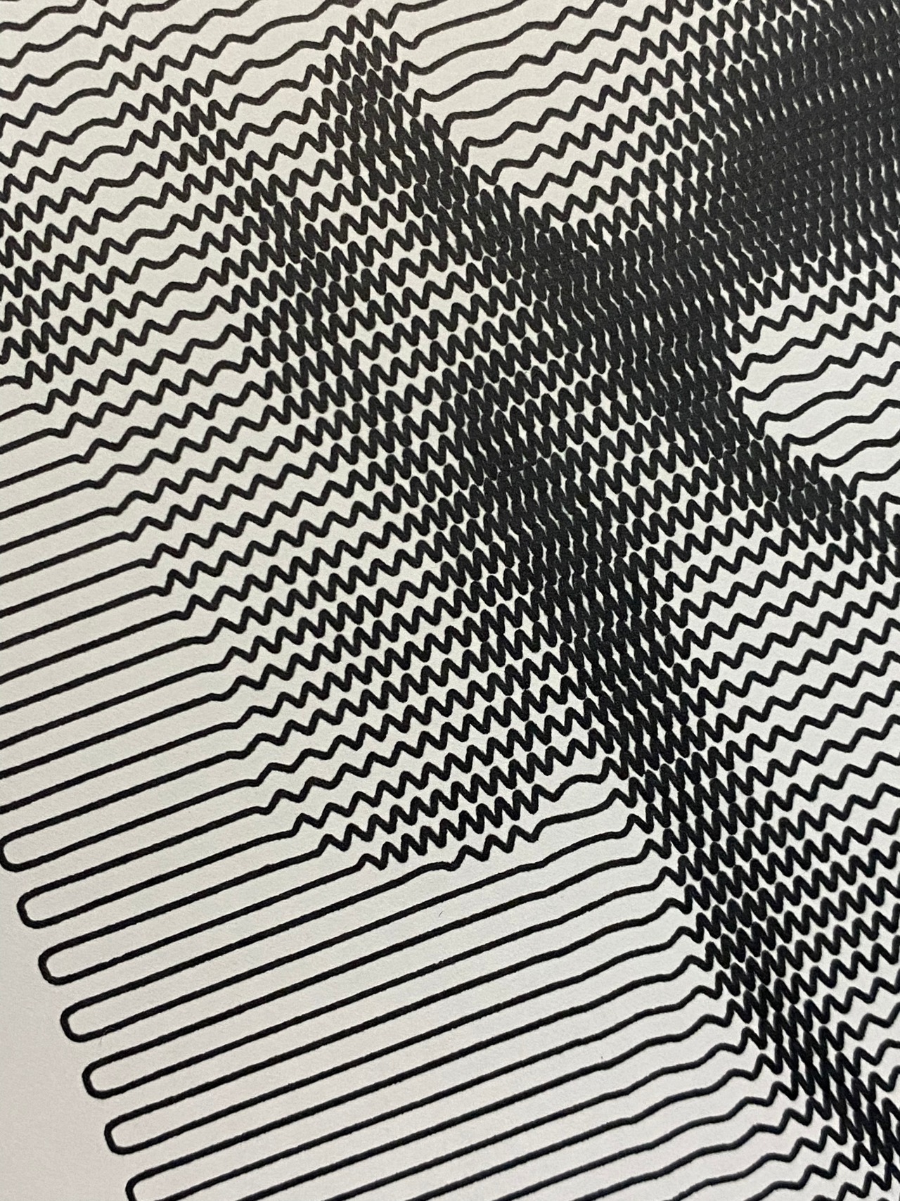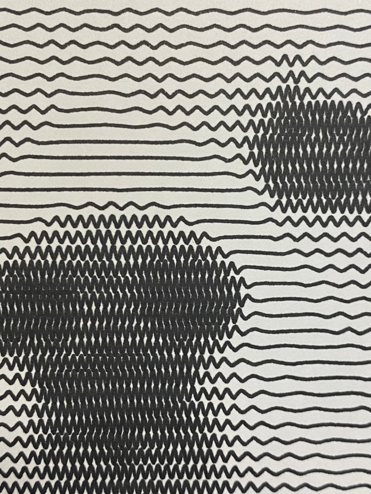波形の曲線の高さ、密と疎でバランスをとって犬の形や表情を表現しています。