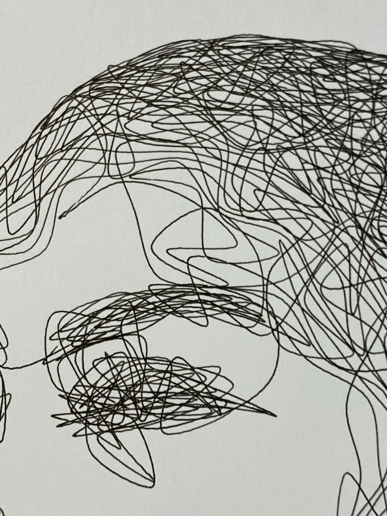 一見無秩序な線に見えますが、密と疎でバランスをとって形や色の深みを出しています。