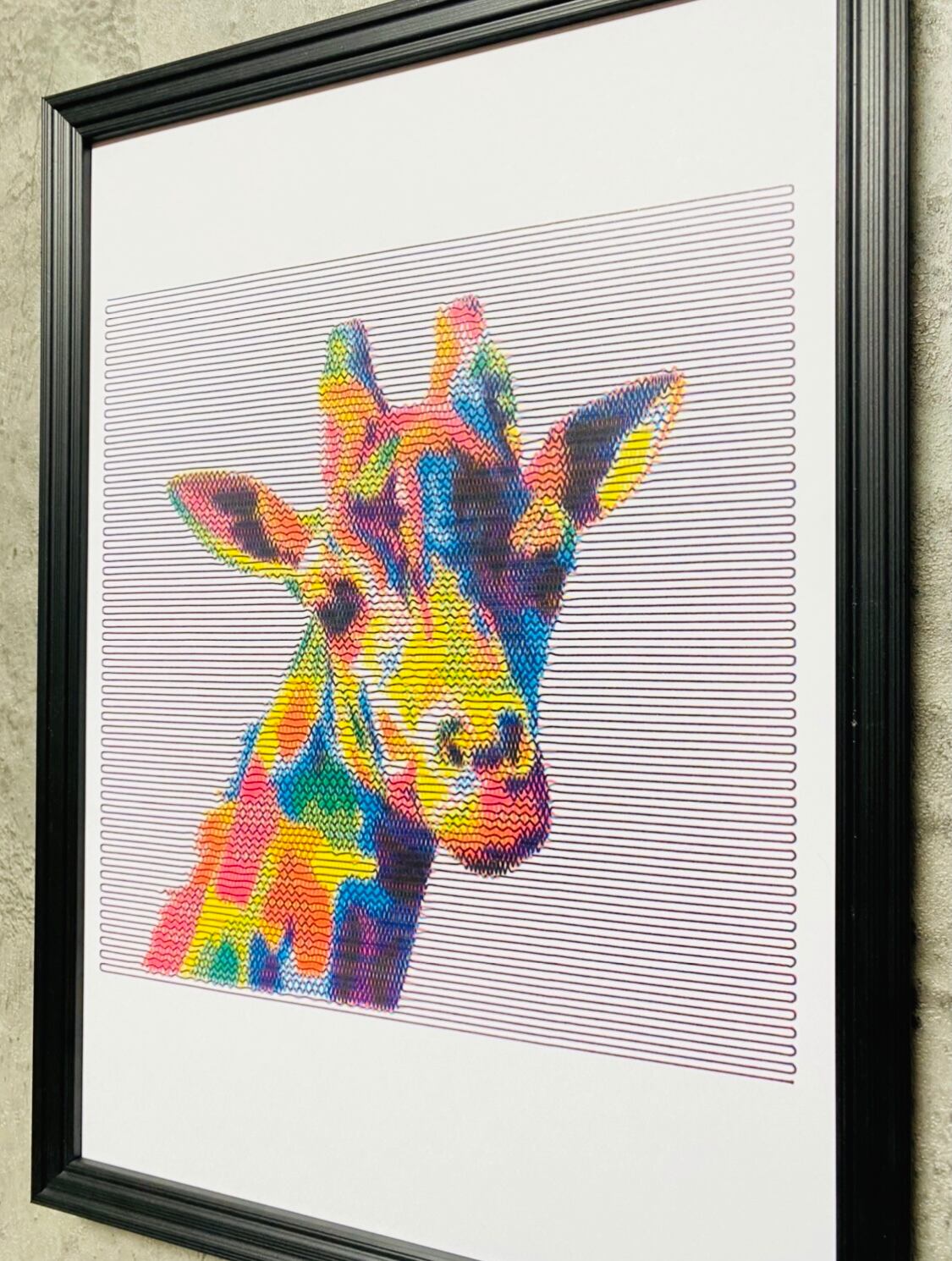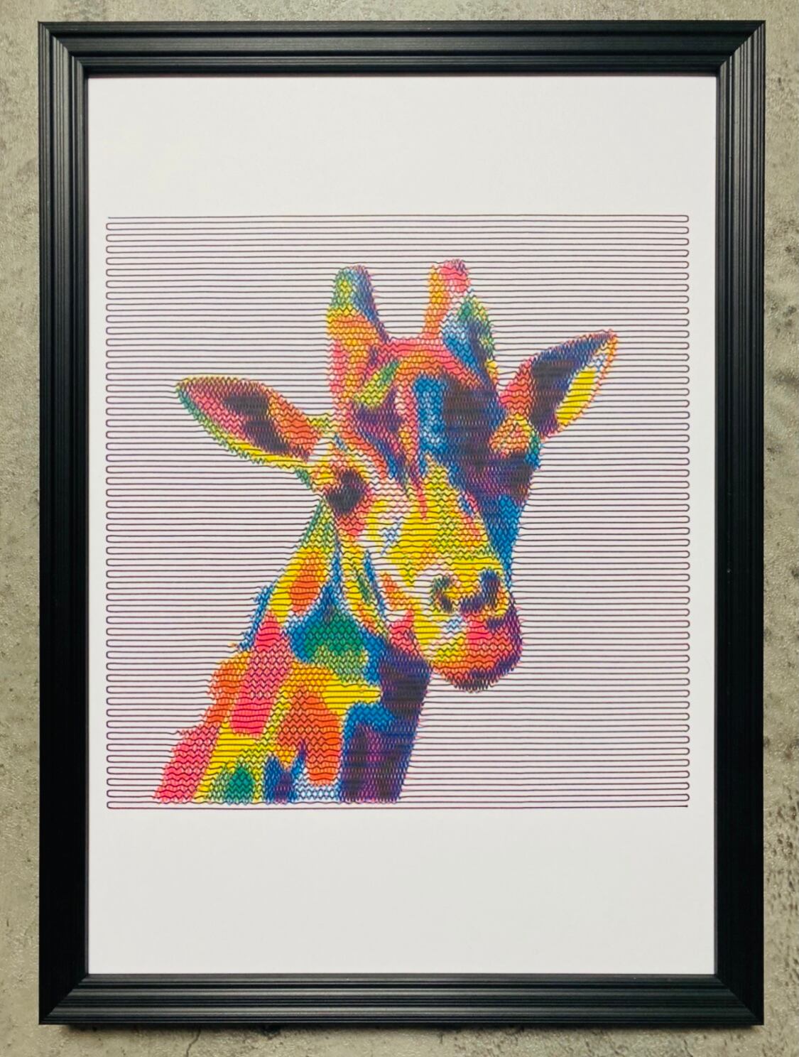 カラフルなキリンを3色で表現しました。