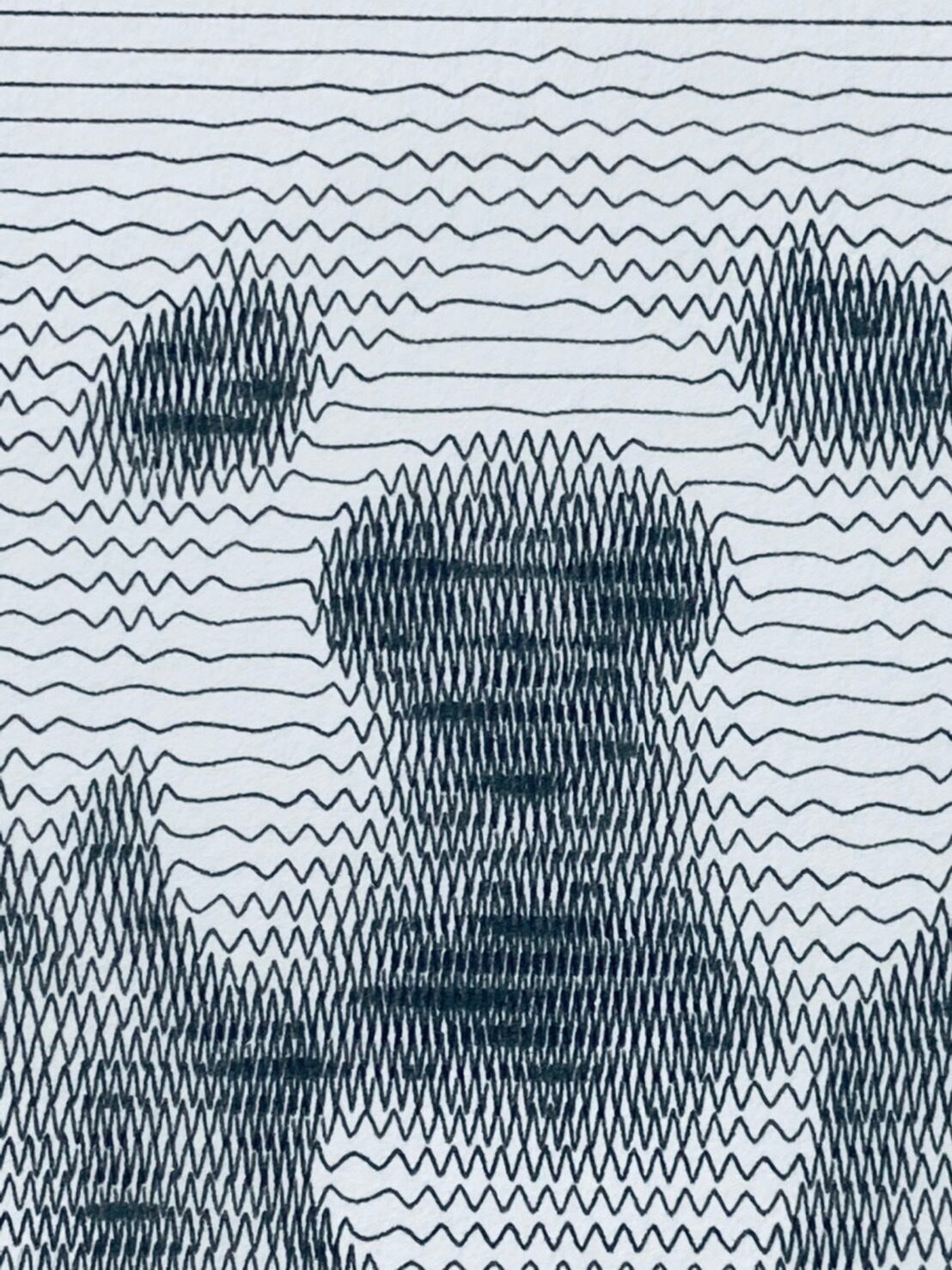 波形の曲線の高さ、密と疎でバランスをとって犬の形や表情を表現しています。