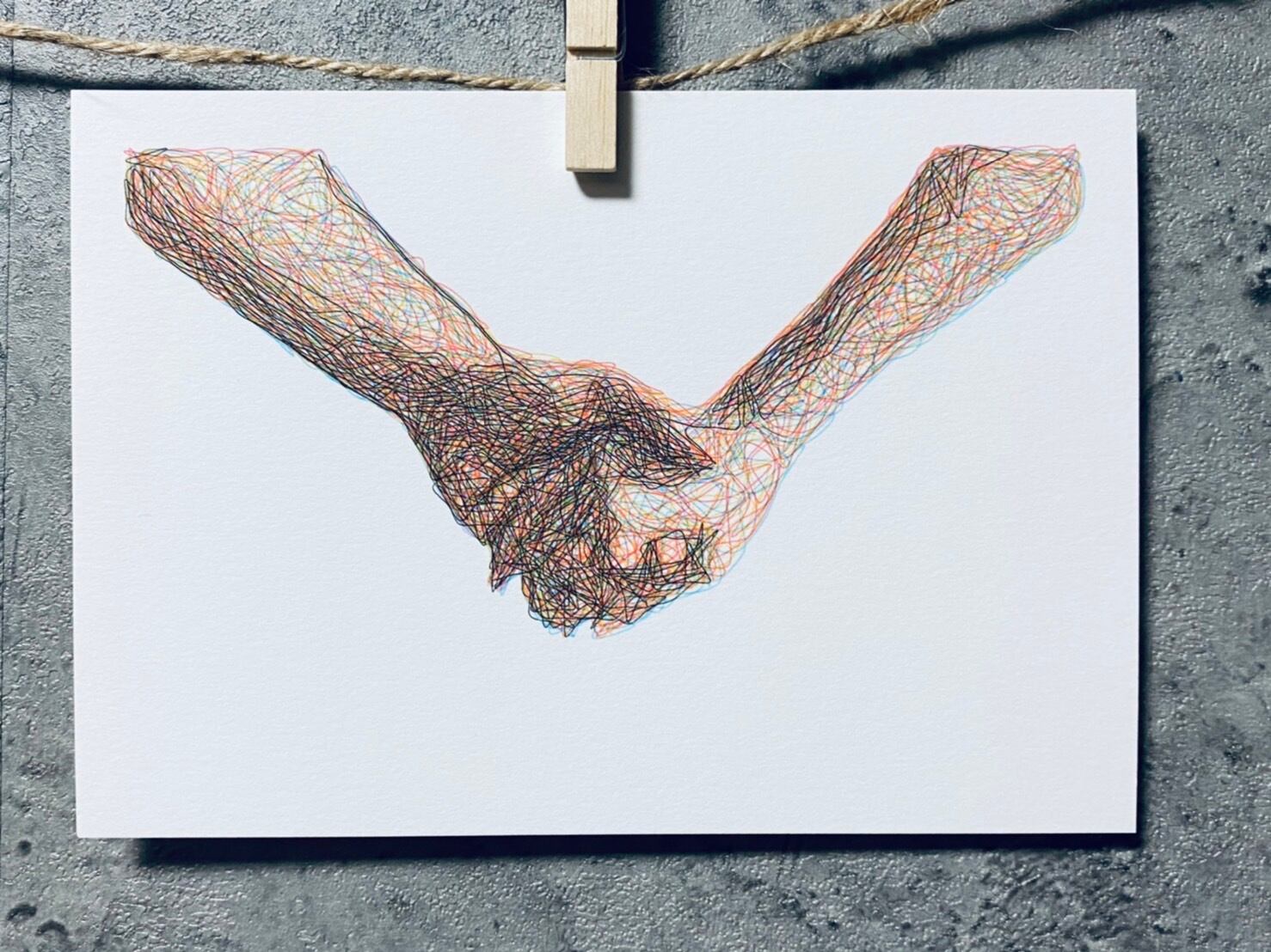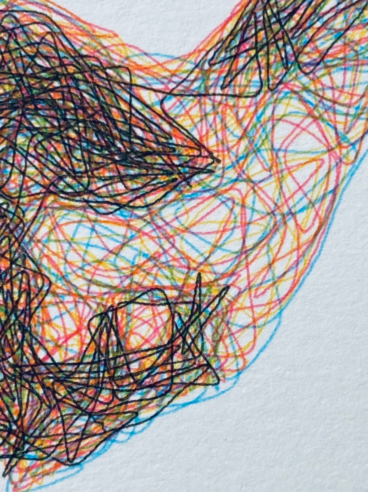 一見無秩序な線に見えますが、それぞれのカラーの密と疎でバランスをとって色の深みを出しています。