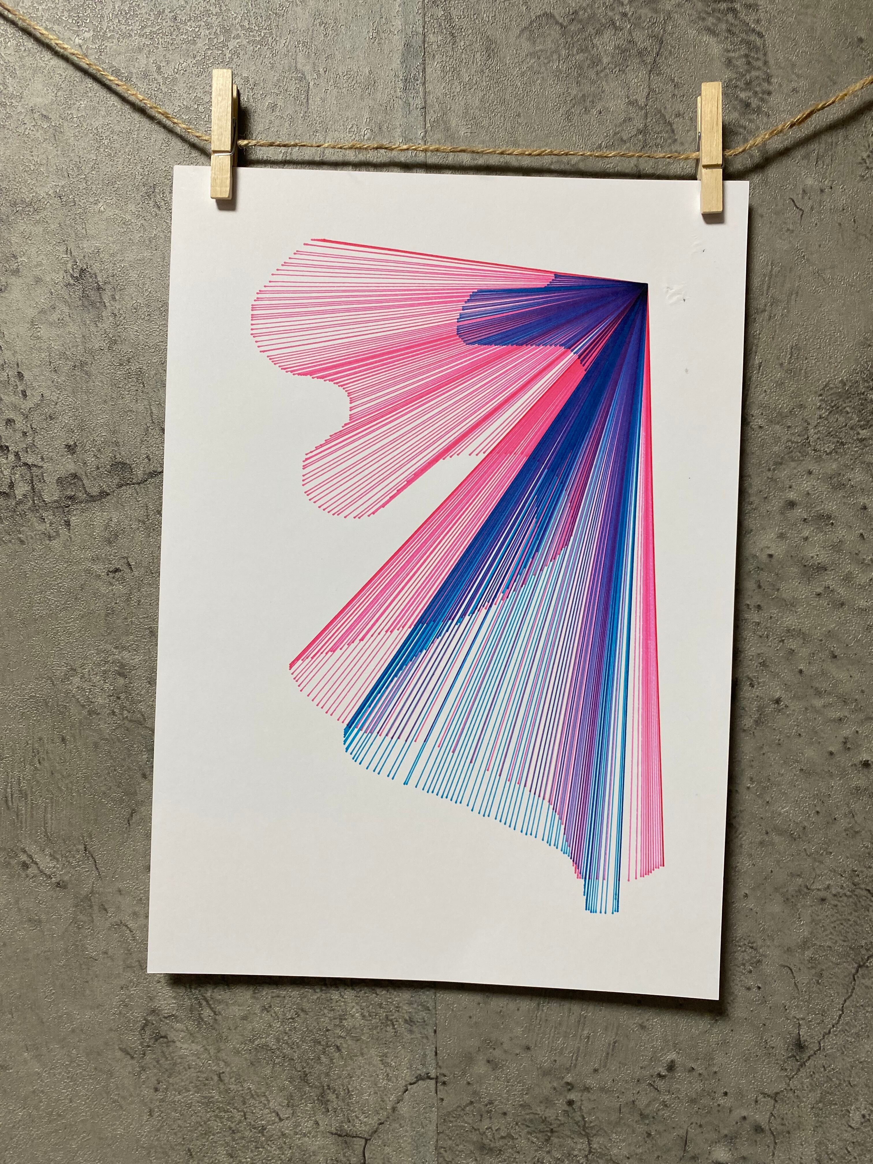 直線のみで奥行きを表現しています。密と疎で色の濃淡を表現しています。