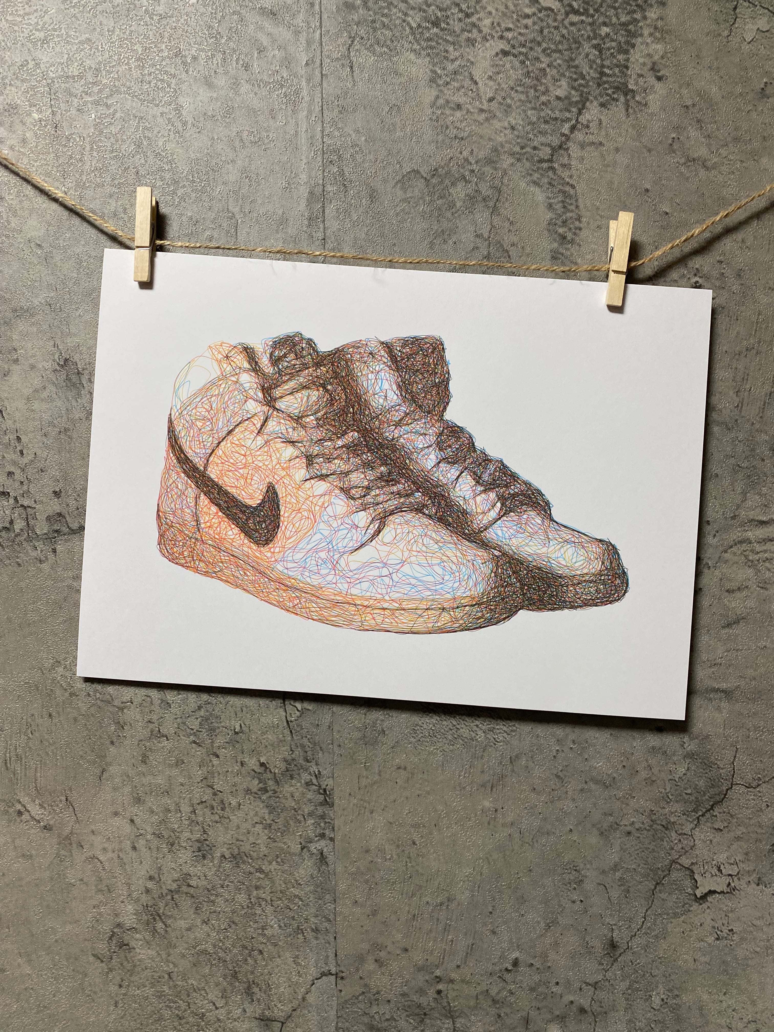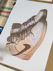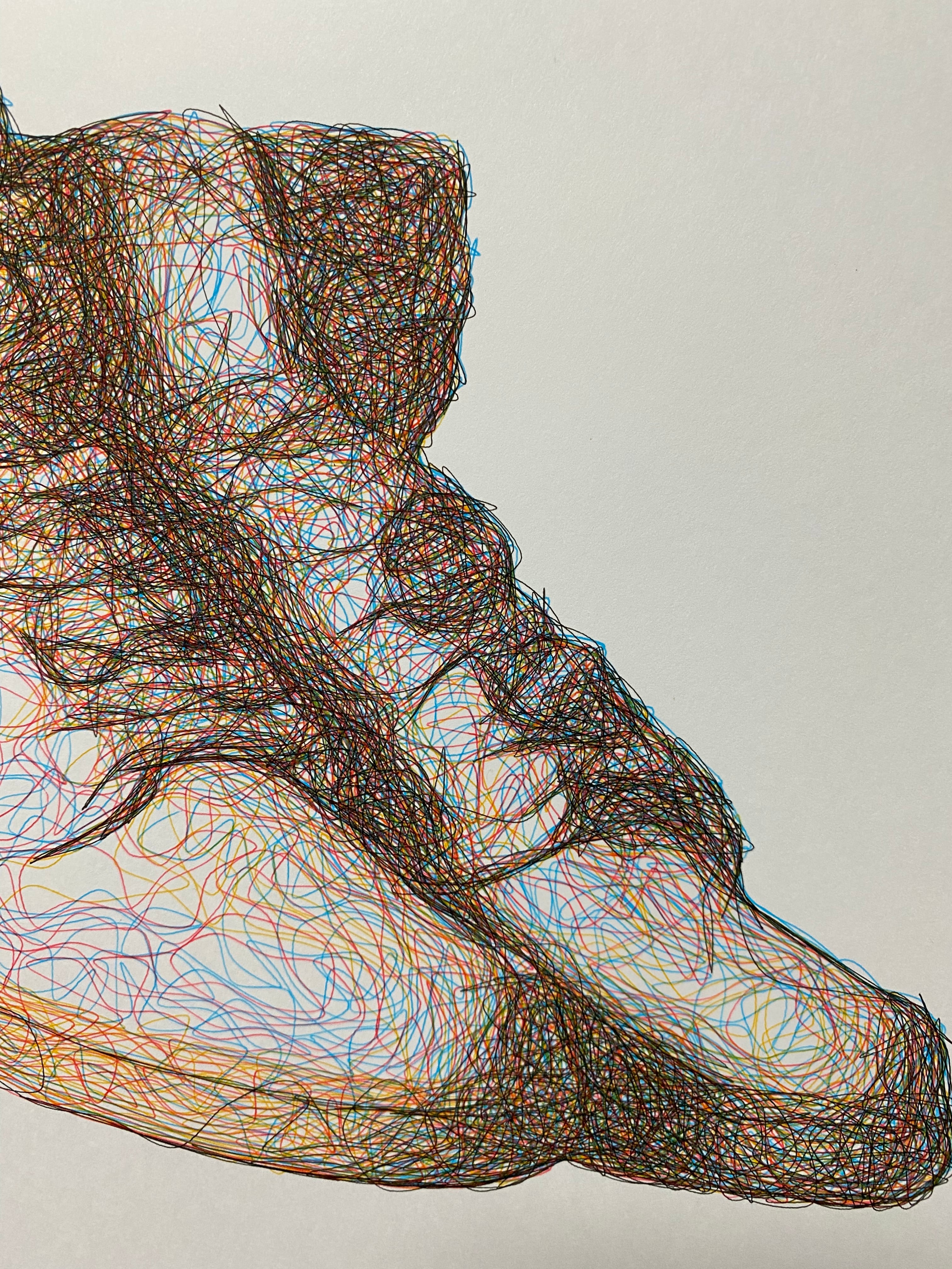 一見無秩序な線に見えますが、それぞれのカラーの密と疎でバランスをとって色の深みを出しています。